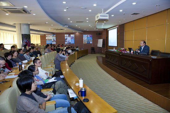 张一春教授运用大量的视频、图表和例子介绍和分析了信息化的教学技术与变革,精品化的资源建设与共享,多样化的教学策略与应用等内容。张一春教授鼓励教师充分利用信息化教学手段,将教育技术能力与具体学科教学相结合,与教学法创新相结合,共建学校信息化教学资源中心,从而改进教学方法,提高教学效果。张一春教授的报告感染着在场的每一个人,使教师对信息化教学有了更进一步的了解。