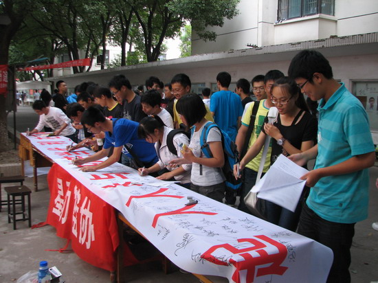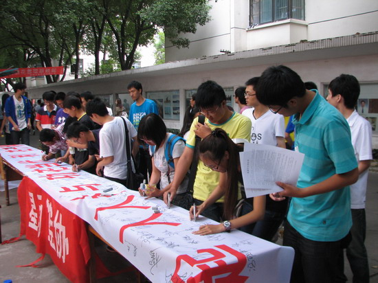 9月29日中午,白云校区管委会在大学生活动中心门口举行校园节水倡议活动签字仪式。机械工程、石油工程、怀德学院的学生参加了活动。同学们主动在内容为“节约用水 从我做起 人人参与 功在当代 利在千秋”和“滴水如油 贵在节约 全校动员 节约用水 从我做起”的横幅上签名。许多同学在参加签字活动后纷纷表示,将积极支持校区节水活动,从自身做起,带动身边的人加入到节水工作中来,为节水这项造福人类的千秋大计做出每个公民应尽的义务。
