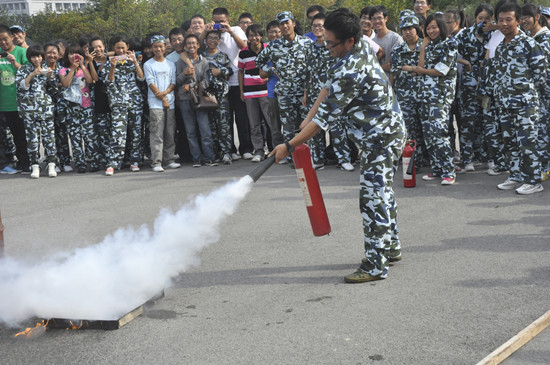 演习之前,同学们认真聆听了消防支队赵鼎科长对如何使用灭火器、逃生自救及注意事项的细致说明。演习开始后,同学们听从指挥,积极主动,手持灭火器秩序井然地尝试了灭火的过程,最后大火在同学们的共同努力下被扑灭,演习活动获得了圆满的成功。