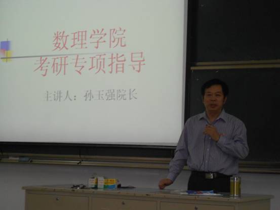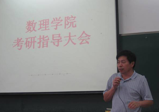 为了更好地推进2012届学生考研工作,近日,数理学院分多次召开了考研专项指导大会,院领导、全部研究生导师出席大会,分别从考研形势、考研政策、学校的选择等多方面对08级同学进行了详细的指导。