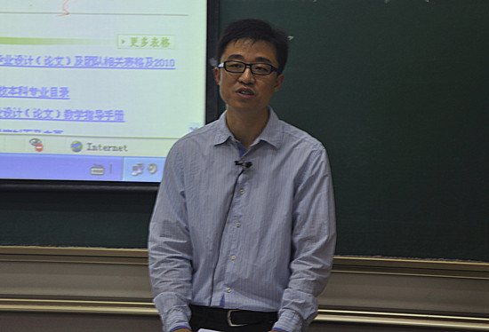 马江权副院长介绍近期毕业论文设计的“双选”工作,包括毕业论文指导老师的选择、网上的具体操作细节以及毕业论文设计的时间安排等内容;周刚副书记向考研和打算求职的同学介绍了近年来的考研、就业形势与近期的招聘活动安排。