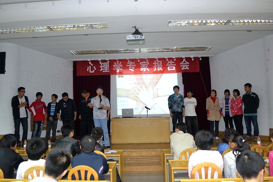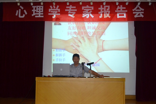 陈锡林教授以拍拍手、抱抱肩等互动活动精彩开场,通过活动中同学们不同的行为表现阐述了一个人的行为活动与他的心理活动息息相关的联系,并围绕行为和心理的关系详细阐述了大学新生如何尽快地适应大学生活,并为未来的职业发展早做准备,打好基础。陈锡林教授还送给同学们88条建议,希望同学们在大学里多去图书馆,多问老师问题,多学点知识,能够培养自主学习能力。