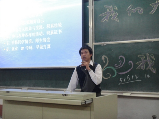 10月16日晚,数理学院在W10阶举行了新老生交流会,2011级全体新同学和08、09级优秀学生代表参加了此次交流会。