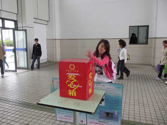 “捐一元,奉献一份爱”为口号的宣传海报醒目地贴在水月广场前的捐款箱上。据了解该活动获得了武进区红十字会的大力支持和肯定,活动一经开展,得到了同学们的积极响应,大家慷慨募捐。另外,同学们也收到了学校相关负责部门老师们的爱心包裹,他们表示希望尽绵薄之力表达自己的一份爱心。活动结束时共募捐到现金2046.4元、学习用品45支笔和300支笔芯、生活用品衣服45件和鞋子若干双。