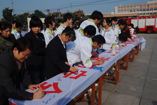 师生员工参加现场签名活动