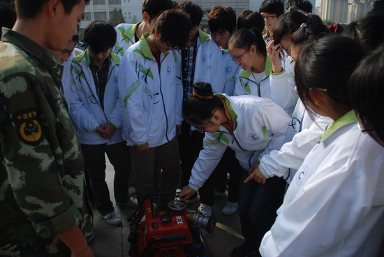 活动在印有“全校动员,积极参加11.9消防安全日活动”的宣传横幅上由师生员工一起联合签名中展开。消防官兵向师生员工现场展示了最新消防装备,并介绍了这些设备的使用方法。活动现场消防官兵还进行了消防水炮和水枪灭火表演。随后在消防官兵的指导下,全体师生员工参加了干粉灭火器使用的实战演练。