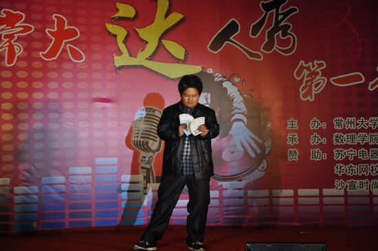 比赛在一段激情四射的街舞表演中拉开帷幕。进入决赛的9名选手一一登台,展现自己的“达人秀”。此次比赛节目相当精彩,惟妙惟肖的名人模仿秀,飞舞旋转的悠悠球表演,见证奇迹的魔术表演,都让观众们叹为观止。其中双人组合的表演也十分精彩,吉他弹唱《温柔》,异国风情的印度舞表演,让人忍俊不禁的相声《达人养成记》。比赛的高潮来自于两位选手的BeatBox表演,这在常大舞台上是第一次亮相,强烈的打击乐器的发声艺术让观众们大饱耳福。经过近2个小时的激烈比赛,来自怀德学院的肖宇恒获得一等奖。
