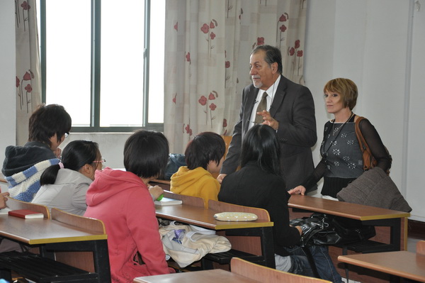 蒙德萨教授一行参观了该院文化长廊、图书资料室、语音教室等,称赞该院资料室藏书丰富、硬件设备齐全,尤其在看完文化长廊之后对外院师生丰富的课余生活和才艺表演赞不绝口。