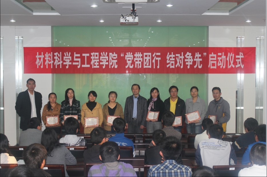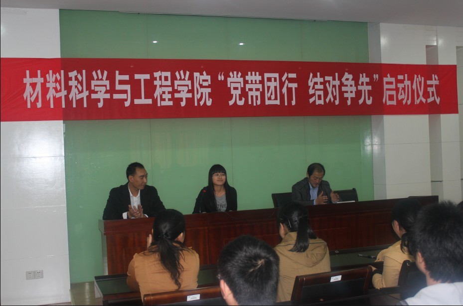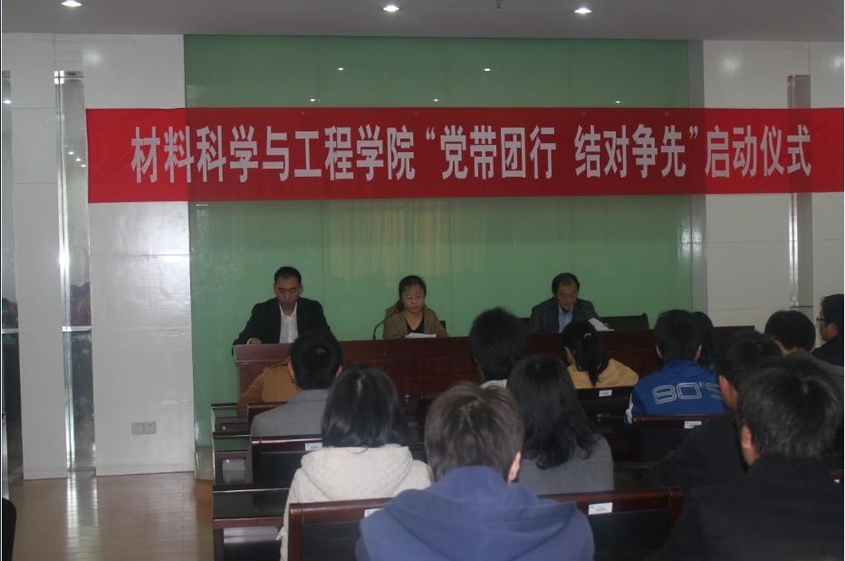 为进一步发挥党员先锋模范作用,加强党员、团员之间的交流,实现以党带团,党团共建的目标,在校团委的号召下,材料学院于11月17日下午在科教城C座219会议室隆重举行了“党带团行,结对争先”活动的启动仪式。院党委书记周开扬、学工办老师及教研室十位青年党员教师参加了此次启动仪式。