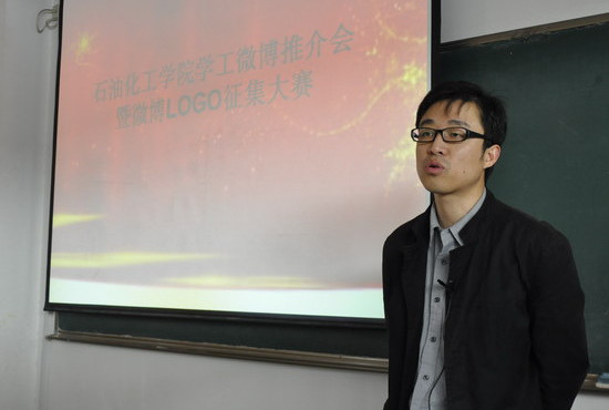 推介会首先由学工办田轶老师介绍了石油化工学院学工微博的策划、建立以及运行等情况;周刚副书记就本次学工微博的开通作了讲话,指出了石油化工学院学工微博建立的目的与意义,并鼓励学院的同学能够在学工微博平台上进行广泛地交流与沟通;本次推介会同时也启动了石油化工学院学工微博LOGO图标的征集大赛。