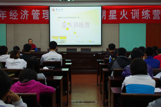 11月17日下午,经济管理学院2011年第二期星火训练营开班仪式在该院东区现代工业中心二楼会议室举行。院团委蒋琳老师和院学生会、团委骨干成员参加了本次活动。