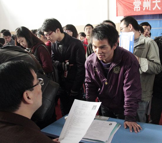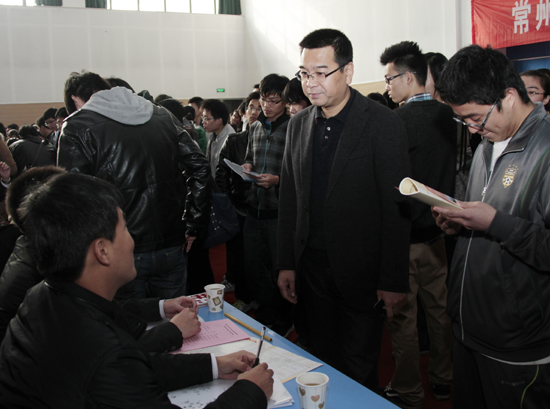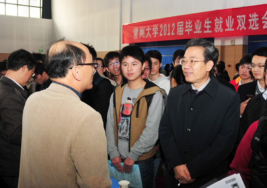 校党委书记史国栋、副校长陈奎庆、副校长陈群在两办、学生工作处及相关部门负责人陪同下,来到招聘大会现场与参会单位代表进行了沟通交流。各二级学院相关领导也到招聘会现场,向用人单位详细介绍我校专业建设与培养模式等情况。我校2012届毕业生2000多人参加了此次招聘大会。据了解,现场多家单位对我校毕业生非常满意,当场与部分应聘学生签约,还与部分学生达成意向。常州电视台、武进电视台等媒体对我校此次招聘大会进行了报道。