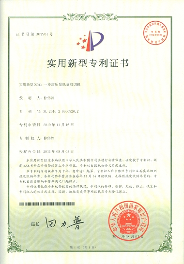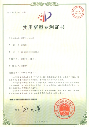 日前,从国家知识产权局获悉,我校怀德学院四系2010级工业设计专业仲伟静同学申请的“一种高质量纸条剪切机”、“ 秸秆快速切碎机”两项专利通过认定,获国家专利证书。