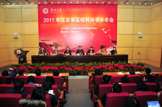 11月30日上午,2011年江苏省高校科协学术年会在文彰楼报告厅举行。江苏省科协副主席张铁恒、东南大学常务副校长胡敏强、省教育厅科技处处长王晓天、常州市科协主席董谦、省教育厅科技处副处长戚跃芳及来自全省70余所高校的领导、代表参加会议。我校党委书记史国栋出席开幕式并致辞,会前,校长浦玉忠会见了领导和来宾。科技处、老年科协、研究生代表共计100余人参加了开幕式。开幕式由东南大学科技处处长李建清主持。