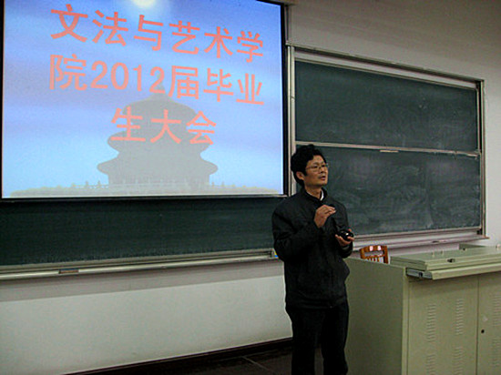 艺术系华强教授对艺术系的学生提出一些毕业环节的注意事项,并表示在今年的毕业作品展览方面,系部会扩大展览规模,给同学一个更好的展示平台。薛勇副书记就毕业环节的注意事项和就业工作对毕业生提出四点要求:一、毕业生应该严格遵守学校规章制度,在外参加招聘会时办好相关的请假手续。二、法学及社会工作专业的学生应当准确定位、革新理念、增强就业认知,建议同学在准备公务员考试的同时也要积极准备事业单位、企业的招聘考试。三、毕业环节学生应该提高自身专业素质,认真对待毕业论文,保证毕业论文有较高的质量,为答辩做充分的准备。四、校外实习的同学一定要与用人单位签订工作协议,保障自身合法权益。尚未找工作的同学,应该更多关注就业信息,为踏入社会做好准备。