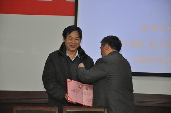 讲座开始前,李定龙院长介绍了张雁秋教授的学术经历,并为张雁秋教授颁发了常州大学环境与安全工程学院兼职教授证书,党委书记朱正伟为张雁秋教授佩戴了校徽。