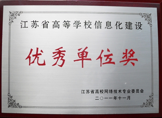 会议对2011年在校园信息化建设过程中有突出贡献的高校进行了表彰。我校被评为2011年“江苏省高等学校信息化建设优秀单位”。(编辑 郁涛)