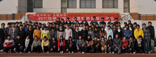 为帮助2011级学生营造良好的宿舍人际环境,引导他们关注乐群性、责任感、主动性、敢于直面问题等品质的培养,学生处心理健康教育与研究中心、后勤管理处于12月3日在武进校区足球场举行了2011级学生“宿舍分享日”主题活动之一的趣味心理运动会。