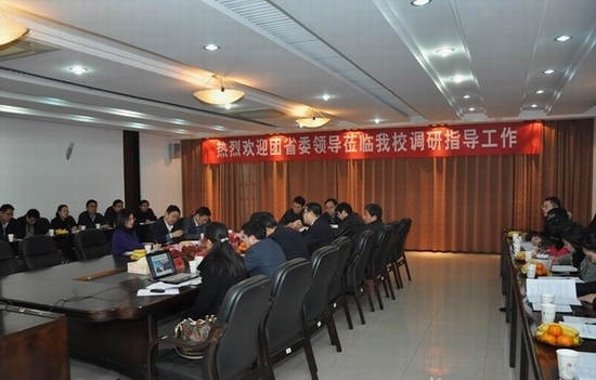 12月9日上午,共青团江苏省委副书记沈海斌专程来我校调研指导共青团工作,团省委学校部部长俞锋,省学联驻会执行主席陆蒨随行。副校长陈奎庆出席并致欢迎辞,组织部、教务处、学生处、工会、团委、后管处等部门的领导以及各二级学院分团委书记参加了汇报会。