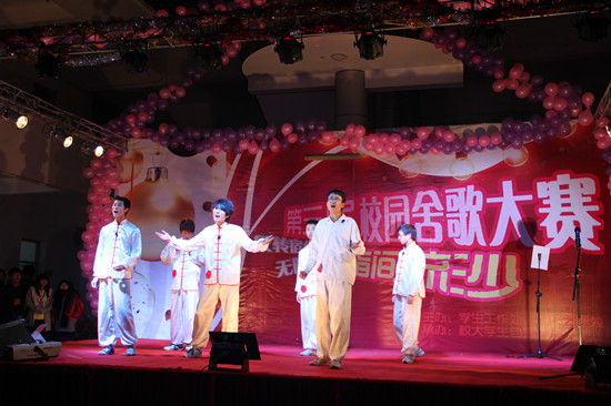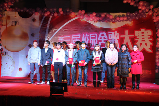 12月9日晚,由后管处、学生处主办,校自律中心承办的第三届“舍歌大赛”在教学辅楼大厅举行。本次舍歌大赛以“指间流沙”为主题,旨在加深同学们的友谊,丰富学生宿舍的业余生活。此次比赛也是宿舍美化大赛系列活动之一。