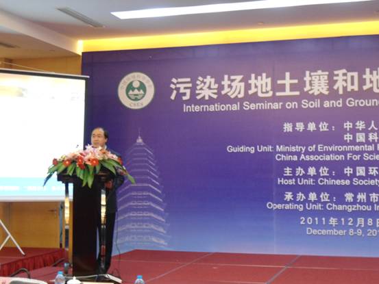 由中国环境科学学会主办,常州环境科学研究院承办的“污染场地土壤和地下水修复国际研讨会”于12月8—9日在江苏常州召开。国家环境保护部总工程师杨朝飞出席研讨会并作讲话,国内外相关专家、资深学者、知名企业负责人以及相关政府人员110多人应邀出席。