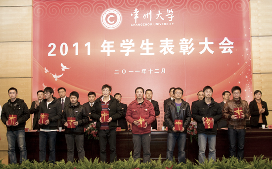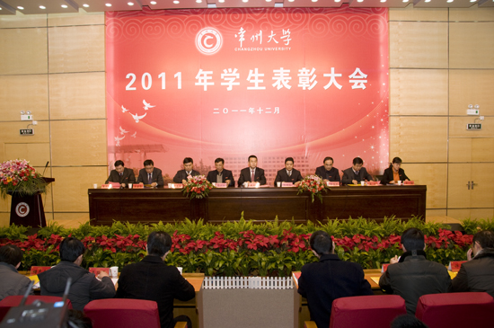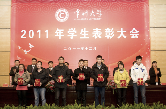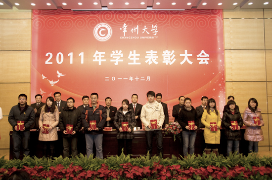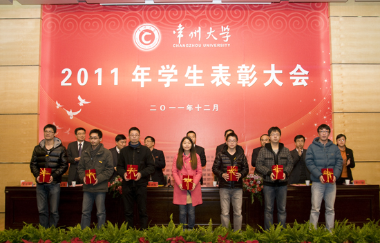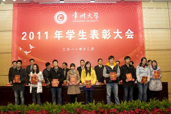 12月14日下午,我校2011年度学生表彰大会在武进校区文彰楼报告厅隆重举行。副校长陈奎庆出席大会,两办、组织部、宣传部、教务处、学生处、研究生部、团委和怀德学院负责人出席会议并在主席台就座。各学院学生工作负责人和学生代表300多人参加了表彰大会。