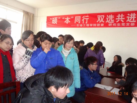 12月14日下午,石油工程学院“硕”“本”同行,双选共进活动在学工办三楼会议室顺利举行,石油工程学院部分研究生党员和本科生团员参加了此次会议。