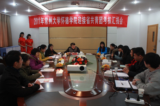 陈奎庆副校长代表常州大学对考核组专家的到来表示欢迎,并简要介绍了常州大学的办学情况;怀德学院党委书记陈权介绍了怀德学院基本情况;怀德学院团委负责人以PPT的形式向专家组汇报了一年来共青团工作的开展情况。专家组在听取了专题汇报后,通过查阅档案材料、召开师生代表座谈会、问卷调查等形式对怀怀德学院共青团工作的开展进行了深入、细致的考核。