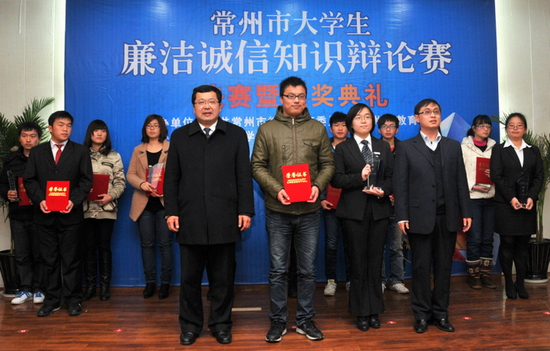 比赛结束后,市纪委、市教育局、常工院相关领导为冠亚季军和最佳辩手颁奖。(编辑 郁涛)
