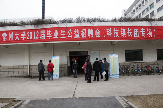 12月18日上午,常州大学2012届毕业生公益招聘会(科技镇长团专场)在武进校区乒乓球馆隆重举行。东台市人才交流中心、武进区牛塘镇商会等领导亲临现场指导。我校副校长陈奎庆,党委组织部、学生工作处等相关负责人到会与用人单位进行沟通与交流,现场为毕业生的择业提供指导与帮助。