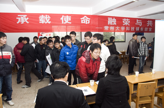 此次招聘会由校党委组织部和学生处组织,参会单位均由学校选派的“科技镇长团”成员牵线联系,并组团带队前来招聘,此创举得到了企业、学校师生的一致好评,武进电视台,武进日报等媒体给予了报道。近年来,常州大学高度重视“产学研”紧密结合工作,热烈响应江苏省委省政府号召,积极实施主动选择战略,先后选派了四批“科技镇长团”,设立了多个“产学研”工作站。这些成员不辱使命,踊跃融入地方,为当地经济发展竭尽全力,也为常州大学早日建成特色鲜明的高水平大学不断贡献应有的力量。(编辑 郁涛)