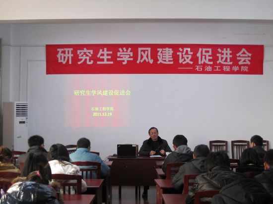 12月19日下午,石油工程学院在院三楼会议室举办了研究生学风建设促进会,学生处研究生教育管理科孙粤文老师应邀作了专题报告,院党委副书记陈粲出席本次大会,全体研究生参加了本次活动。