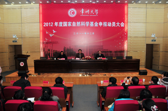 12月21日下午,2012年度国家自然科学基金申报动员会在文彰楼报告厅成功召开。史国栋书记出席大会并讲话,各二级学院院长、分管科研的副院长、校创新团队、教授、副教授、博士等共计300多人参加了会议。