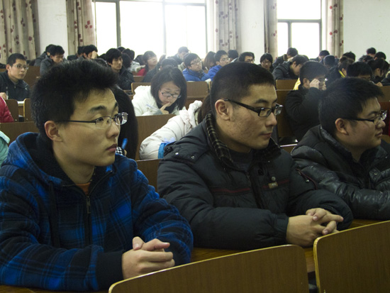 李文明副书记针对学生就业、文明离校、顺利毕业等与毕业生息息相关的工作进行了简明扼要的指导,对08级160多名即将参加硕士研究生入学考试的同学进行了勉励和临考动员,希望他们传承学院良好学风,心无旁骛,考出好成绩。随后,李文明副书记和丁永红副院长给考研的学生发放了慰问品。