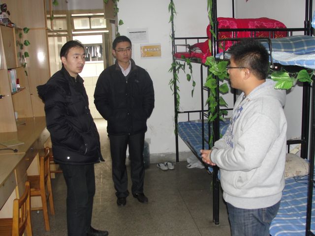 12 月27日上午,院党委副书记吴荷平亲自率队巡考,实地了解考试情况。巡考期间,仔细地对考场秩序、考风考纪等各方面进行了认真的检查,并向监考老师询问学生的学习状况。与此同时,各年级辅导员对所带年级宿舍进行检查,对宿舍的安全、卫生等事宜进行了相应安排。研究生党员发挥党员先锋作用,对本科生期末考试课程进行考前辅导。