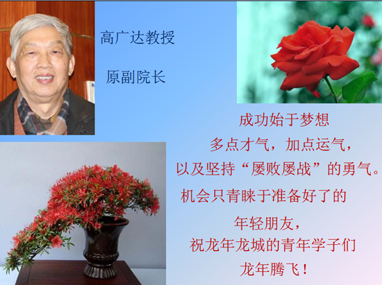 新年伊始,我校石油化工学院看望慰问了关工委定居在沪的退休老教师,退休老教师以及关工委的老师们对学校的学生赠与了新春的寄语,并制作了精美的PPS,在带来新春祝福的同时,也对学生的个人成长与成才提出了富有哲理的人生导言,激励学生培养并磨练自己的意志,树立起坚定的信心,刻苦努力,成为一个认真、踏实,勇担责任的优秀青年。