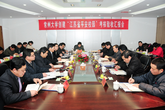 2月29日,南京大学保卫处处长戴长顺率“江苏省平安校园”省级考核验收组一行3人来我校,专题考核验收“江苏省平安校园”创建工作。校长浦玉忠、副校长陆锦冲出席会议,两办、宣传部、学生处、财务处、资产处、保卫处、后勤管理处、白云校区管委会、信息中心、后勤集团等部门负责人参加了汇报会。常州市教育局、公安局、综治办相关领导参加验收会。