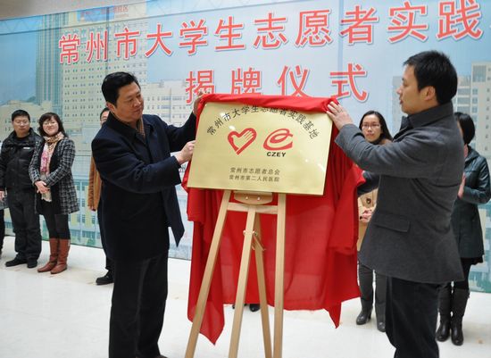 3月3日上午,常州市大学生志愿者实践基地揭牌仪式在常州市第二人民医院阳湖分院的一楼大厅举行。本次仪式由常州市志愿者总会与常州市第二人民医院主办,制药与生命科学学院2011级全体学生参加了本次仪式。