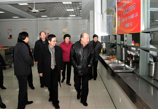 陆锦冲副校长陪同调研组考察我校食堂餐厅