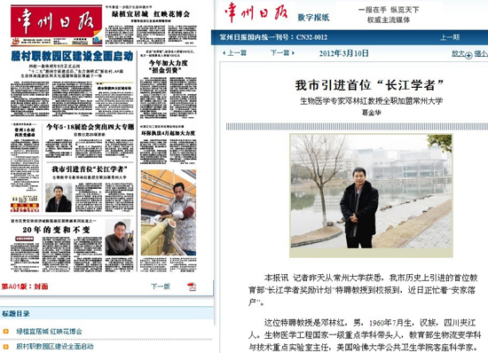 常州电视台、常州电台记者专访全职加盟我校的邓林红教授
