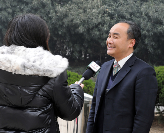 江苏教育电视台记者专访我校人事处处长黄正教授