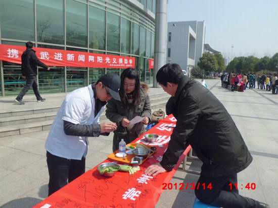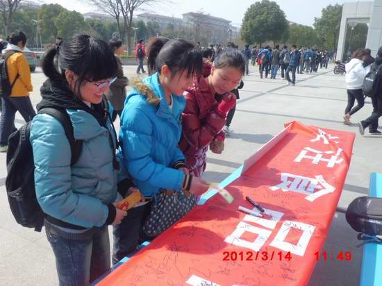 活动现场,为了让全校师生放心食用食堂饭菜,外国语学院志愿者向过路师生展示了在食堂操作间实地拍摄的工作照片,并从食堂操作间选取了几样食材向大家做以展览。后勤产业集团公司的老师现场进行了检验蔬菜农药残留的实验,并向师生们讲解了识别农药残留的技巧。此外,同学们还制作了一批生活常识书签赠送给途经的师生,同时邀请热心师生在宣传条幅上签名留念。