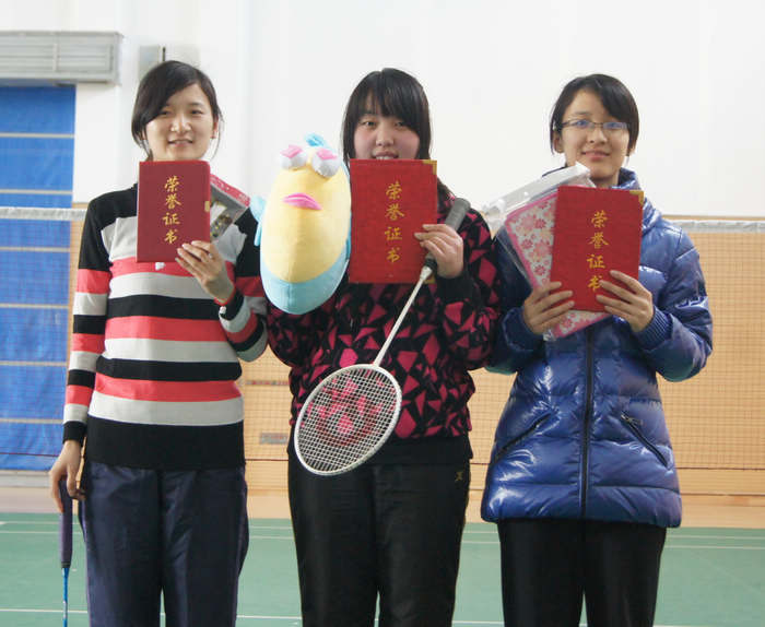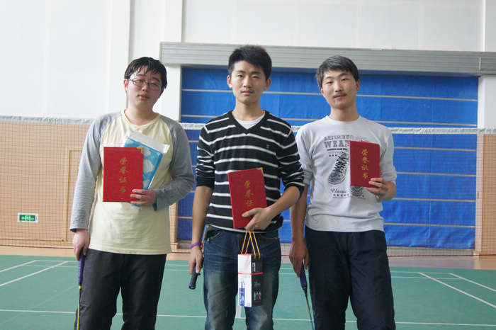 经过现场抽检后,选手们分组进入了激烈的初赛淘汰战。为了能够顺利进入到后面的决赛,选手们使尽浑身解数,将高远球、扣杀、劈杀、吊球等各路球技展现的淋漓尽致。现场拉拉队的喝彩声、加油声、欢呼声此起彼伏,将现场气氛一次次推向高潮。经过几轮的拼杀后,进入决赛的选手们更是充分发挥顽强拼搏的体育精神,每球必争、奋力拼搏、永不言弃的精神充溢了整个赛场。最后来自金材112的沈星澄、高分子111的王筱星分获男女单打冠军,而材料102的储呈祥和金材101的徐晓晨则如愿捧得混双桂冠,为此次羽毛球比赛的顺利举行画上了圆满的句号。