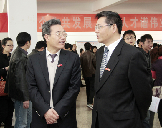 史国栋书记、浦玉忠校长陪同李小平书记考察招聘会现场