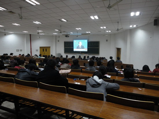 此次学习活动,深入解读了“两会”的热点、焦点和亮点,分析了当前经济社会面临的形势与任务。两位学生党员代表就如何加强对农民工人文关怀,花大力气解决择校问题等十大亮点话题,通过制作PPT材料,以图文并茂并辅之与视频播放相结合的形式,向现场同学进行深入细致解读,并就其中一些议题与大家进行现场了交流。