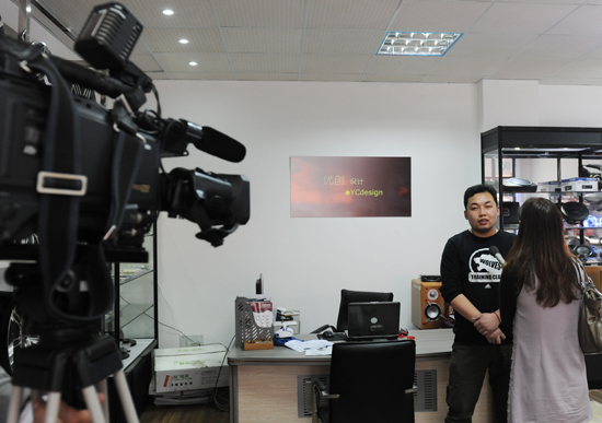 电视台记者采访我校原校学通社摄影部主任、成功创业的宋洋同学