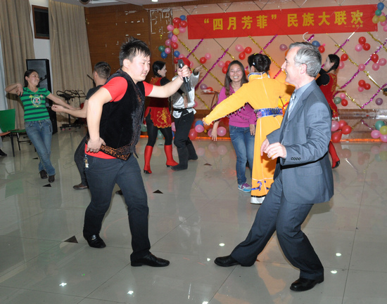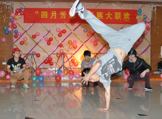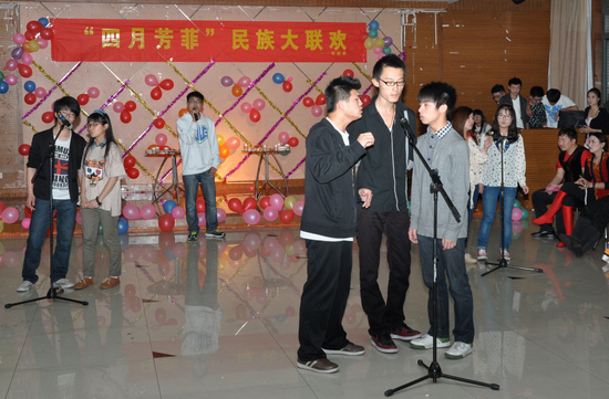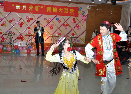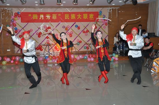 4月9日晚,校团委、新疆班在大学生活动中心三楼多功能厅举行了以“四月芳菲”为主题的民族文化大联欢活动。校团委老师,新疆班全体师生,国际教育交流学院外教老师以及校舞蹈队、韩语协会、街舞联盟、楼兰剧社、悠悠球社、音乐坊等社团的学生代表共200多人参加了联欢活动。活动由校学生会、社联、广播站承办。