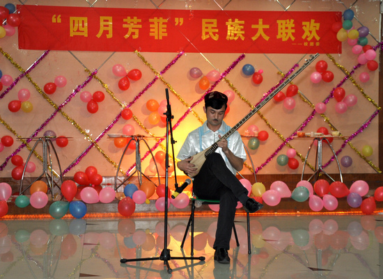新疆班同学进行弹布尔表演