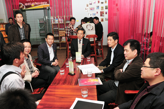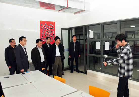 朱卫国副厅长一行在史国栋书记、陈奎庆副校长、陆锦冲副校长陪同下考察大学生创业项目
