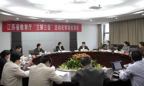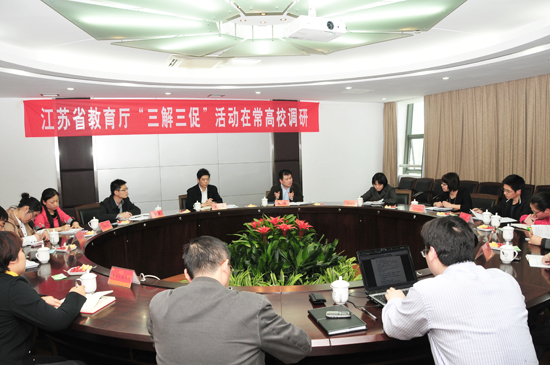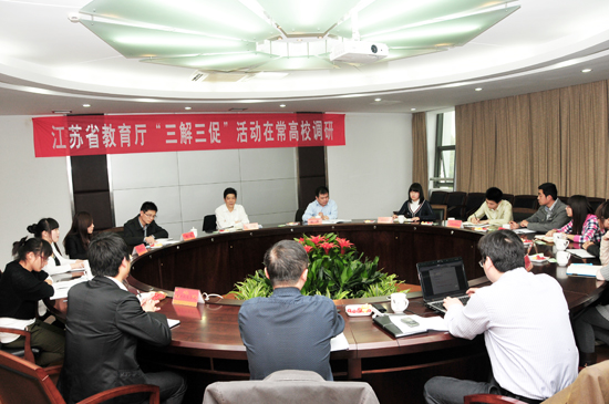 在常大调研期间,朱卫国副厅长一行还走访了江苏技术师范学院、常州工学院,常州机电职业技术学院,召开了在常高校创业示范校座谈会,心理健康教育教师座谈会,面向在常高校大学生和学工人员分别发放问卷共计700份。(编辑 郁涛)